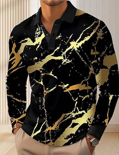 Муж. Абстракция геометрический Поло Длинный рукав Футболки поло Лацкан На каждый день на открытом воздухе Для улицы Одежда для спорта и отдыха На каждый день 3D печать Пуговицы Весна Осень Зима