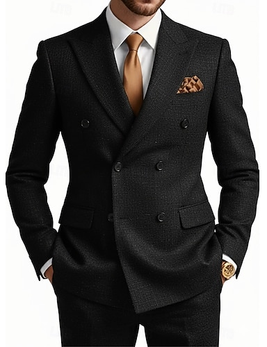 Мужской Бизнес Деловые костюмы Лацкан с острым углом Черный Бордовый Формальная Однотонный Узкий крой Набор из 2 предметов