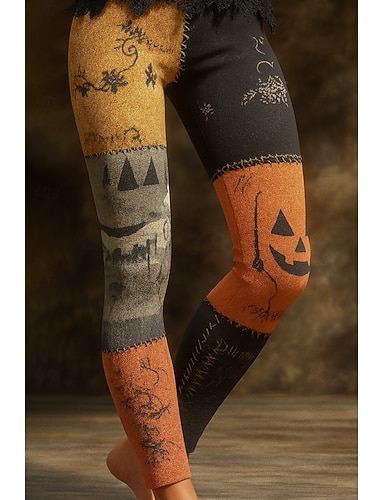 Жен. Тощий Отпуск Винтаж Мода Полная длина ЗавышеннаяPantsHalloween Черепа Хэллоуин Кулиска Пэчворк Эластичный пояс Эластичная Официальные Отпуск Для улицы Темно-серый Светло-серый Оранжевый