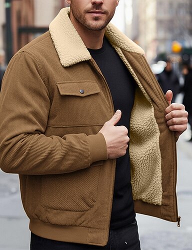 Муж. Вельветовый пиджак Флисовая жилетка Официальные Дом Сохраняет тепло Карман Воротник из флиса Осень Зима Сплошной цвет Активный Нейтральный Короткая Черный Коричневый Серый Жакеты