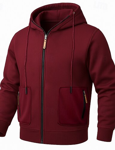 Муж. Толстовка Толстовка с капюшоном на молнии Толстовка из флиса Толстовка с капюшоном на флисовой подкладке Черный Бордовый Капюшон Полотняное плетение Для занятий спортом Повседневные Праздники