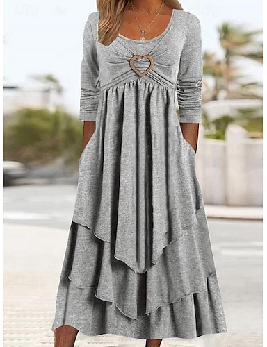 Жен. Платье средней длины Повседневное платье Мода Современное Отпуск Повседневные выходные Стандартный Полотняное плетение Длинный рукав Вырез под горло Коричневый Зеленый Светло-серый Весна Осень