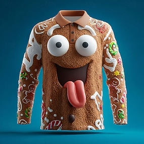 Новогодняя тематика Муж. Пряничные человечки Поло Длинный рукав Футболки поло Лацкан На каждый день на открытом воздухе Одежда для спорта и отдыха На каждый день 3D печать Пуговицы Весна Осень Зима