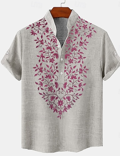 Муж. Рубашка Льняная рубашка Летняя рубашка Одежда для пляжа Кнопка рубашка Цветочные Отпуск Кьюриз Белый Розовый Зеленый Светло-синий С короткими рукавами Воротничок Лето Весна лето Одежда