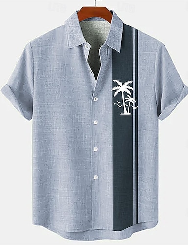 Муж. льняная рубашка Пляжная рубашка Гавайская рубашка Кокосовая пальма на открытом воздухе Отпуск Синий Коричневый Зеленый С короткими рукавами Воротник-стойка Лето Весна Одежда С принтом