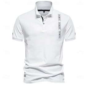 Муж. Поло Офис Бизнес Отложной С короткими рукавами Отпуск Винтаж Сплошной цвет Лев Вышивка Пуговицы Лето Весна Темно-серый Черный Белый Светло-зеленый Темно синий Насыщенный синий Поло