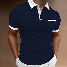 Муж. Деловое поло Рубашки-поло из пике Бизнес Повседневные Ребристый воротник-поло Классика С короткими рукавами Контрастных цветов Пэчворк кнопка Лето Весна & осень