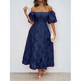 Ретро 1950-е года Полдень Платья Расклешенное платье Рукава буффы С открытыми плечами Цветочный принт А-силуэт Маскарадный костюм Жен. Маскарад Свадьба Отпуск Чаепитие Взрослые Платье