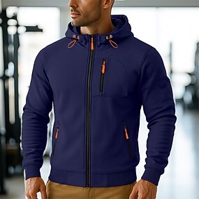Муж. Толстовка Толстовка с капюшоном на молнии Тактическая толстовка Черный Военно-зеленный Темно синий Хаки Светло-серый Капюшон Полотняное плетение Карман Для занятий спортом Повседневные Праздники
