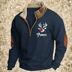 Муж. Толстовка Толстовка с застежкой-молнией Черный Темно синий Хаки Светло-серый Половина молния Полотняное плетение Рождество Для занятий спортом Повседневные Рождество Уличный стиль Круто