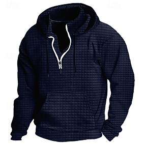 Муж. Толстовка Толстовка с застежкой-молнией Черный Темно синий Синий Хаки Светло-серый Капюшон Полотняное плетение Четверть молния Для занятий спортом Повседневные Праздники Полиэстер