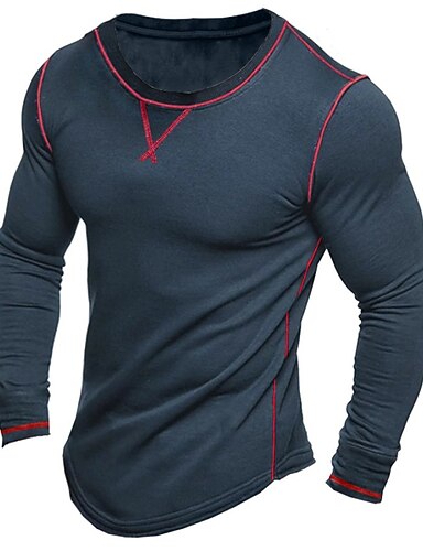 Муж. Футболка Вафельная трикотажная футболка Рубашка с длинным рукавом Длинный рукав Четверть молния Весна & осень Контрастных цветов Мода Оригинальный рисунок Классический Пэчворк Молния