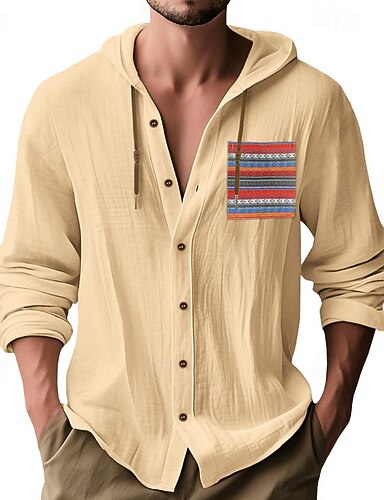 Муж. Рубашка льняная рубашка Летняя рубашка Пляжная рубашка Кнопка рубашка рубашка с капюшоном Полотняное плетение Отпуск На каждый день Черный Белый Небесно-голубой Цвет хаки Длинный рукав Капюшон