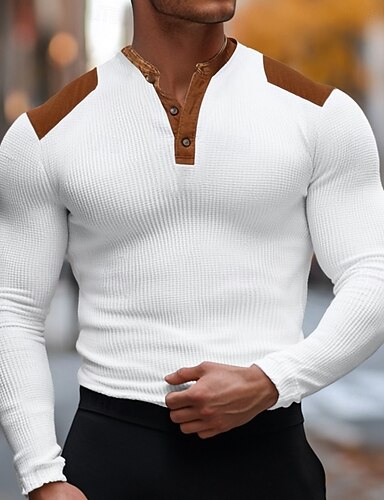 Муж. Вафельный тройник Футболка с пуговицами Футболка Рубашка Хенли Длинный рукав Хенли Весна & осень Полотняное плетение Рукав реглан Мода Оригинальный рисунок Классический Пэчворк