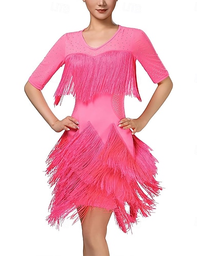 Латино Платье С кисточками Стразы Жен. Выступление На каждый день Без рукавов Спандекс