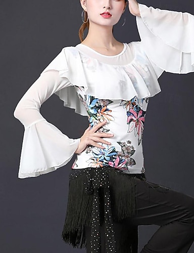 Латино Бальные танцы Кофты Рисунок Оборки Планка Жен. Выступление Учебный Рукав до локтя Завышенная талия Терилен