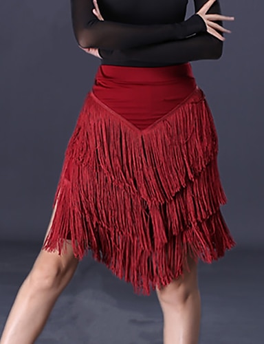 Юбки для латинских танцев, бахрома, кисточки, рюши, однотонные женские тренировочные юбки из полиэстера