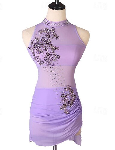 Латино Платье Стразы Жен. Выступление На каждый день Без рукавов Спандекс
