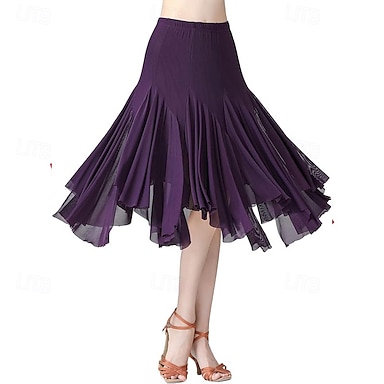 Латино Юбки Чистый цвет Жен. Выступление Учебный Молочное волокно