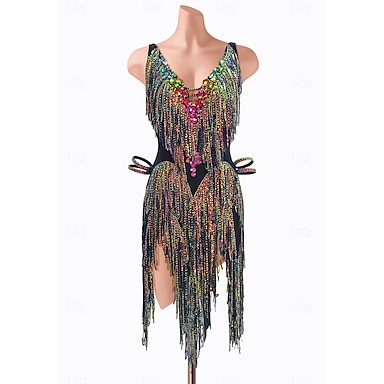 Латино Платье С кисточками Стразы Жен. Выступление На каждый день Без рукавов Спандекс