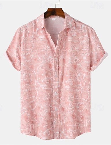 Муж. Рубашка Летняя рубашка Повседневная рубашка Пляжная рубашка Кнопка рубашка Розовый Синий Серый С короткими рукавами С принтом Лацкан Отпуск Гавайский Одежда Мода На каждый день Удобный