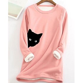 Жен. Пижама-свитшот с флисовой подкладкой Пуловер Толстовка Толстовки Кот Уличный стиль На каждый день Длинный рукав Вырез под горло Обычные топы Для улицы Праздники На выход С принтом