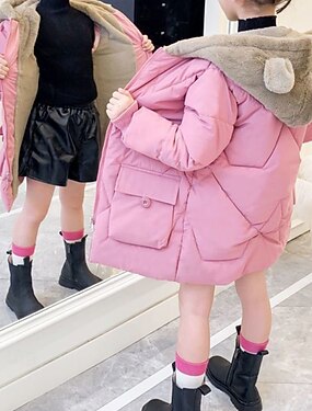 Дети Девочки Пуховик Сплошной цвет Симпатичные Стиль Карман Пуговицы Школа Пальто Верхняя одежда 4-12 лет Зима Черный Светло-зеленый Розовый