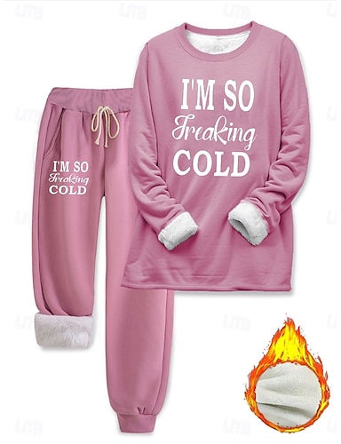 Жен. Теплый Повседневные Комплекты из двух предметов Спортивный костюм Комплекты брюк Длинный рукав Вырез под горло Буквы Кулиска С принтом Повседневные Черный Темно-розовый Синий Осень Стандартный