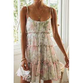 Жен. Мини-платье Платье на выпускной Цветочное платье Платье-комбинация Мода Отпуск градация На выход Стандартный Цветы Без рукавов На тонких бретелях Светло-розовый Желтый Светло-зеленый Розовый Лето