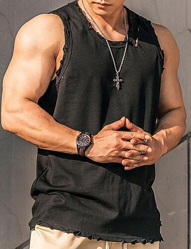 Муж. Безрукавка Жилет Майки Без рукавов Круглый вырез "Круглый вырез ""под горло""" Лето Сплошной цвет Полотняное плетение Мода Классика Удобный Для улицы Повседневные Спорт Черный Белый Красный