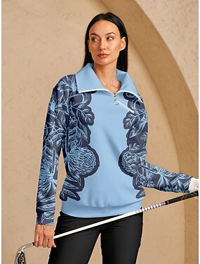 Жен. Толстовка пуловера Синий Длинный рукав Верхняя часть Женская одежда для гольфа Одежда Одежда Одежда