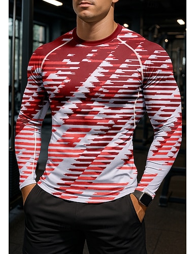 Муж. Компрессионная футболка Футболка для бега 3D печать Длинный рукав Основной слой Полоски Быстровысыхающий Сжатие видеоизображений Для тренировки Power Flex Влагоотводящие