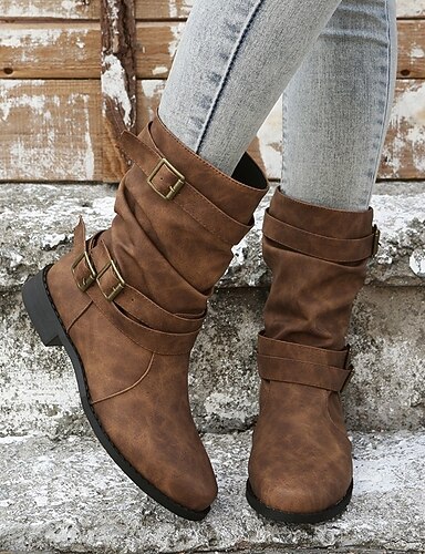 зимние рыцарские сапоги средней высоты из искусственной кожи для женщин, ботинки Martin на каблуке с перекрёстным наклоном