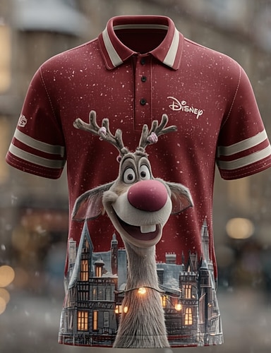 Новогодняя тематика Муж. Северный олень Поло на молнии С короткими рукавами Отложной Для отдыха На каждый день фестиваль 3D печать Лето Черный Красный Зеленый