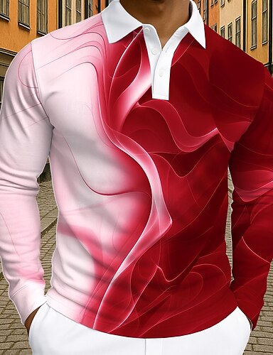 Муж. геометрический Линии Поло Длинный рукав Футболки поло Лацкан Деловая одежда Одежда для спорта и отдыха На каждый день 3D печать Пуговицы Весна Осень Зима Красный Синий Зеленый