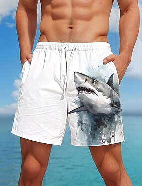 Муж. Животное Акула Обтягивающие длинные шорты Купальные шорты Пляжные шорты Нормальная Мода Уличный стиль Гавайский Повседневные Праздники Уличная одежда Карман Кулиска Эластичная талия Дизайнер