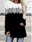 Жен. Футболка Графика Леопард Геометрический принт Винтаж Мода Стиль Длинный рукав Вырез под горло Круглый вырез Обычные топы Повседневные выходные С принтом Черный и серый Осень Зима