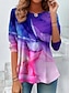Жен. Футболка Графика Абстракция Винтаж Мода Стиль Длинный рукав Вырез под горло Круглый вырез Обычные топы Повседневные выходные С принтом Розовый Лиловый Лето Весна Осень