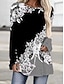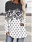 Жен. Футболка Цветочный принт Графика Горошек Винтаж Стиль Классика Длинный рукав Вырез под горло Круглый вырез Обычные топы Повседневные С принтом Белый / Черный Черный Белый Весна Осень