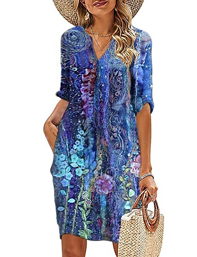Жен. Мини-платье Повседневное платье Этническое платье Платье-футболка Платье прямого кроя На каждый день Зимнее платье Отпуск Офис Свободное облегание Цветочный принт Геометрический принт Огурцы
