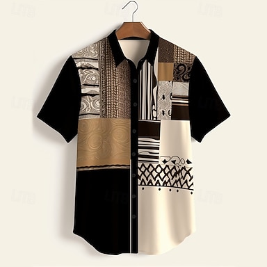Муж. Геометрический принт Геометрический рисунок Рубашка Кнопка рубашка С короткими рукавами Винтаж Мода Повседневная Отпуск Повседневные Лето Отложной Рубашки с воротником Пуговицы С принтом