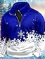 Новогодняя тематика Муж. В снежинку Градиент цвета Рубашка Атласная рубашка Длинный рукав Мода Повседневная на открытом воздухе Для вечеринок Праздники Весна Осень Отложной 3D