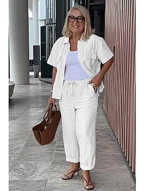 Жен. Размер ЕС / США Комплекты брюк С короткими рукавами Черный Белый Серый Осень