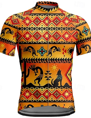 Муж. Велокофты Геометрический принт С короткими рукавами Велоспорт Футболка Футболка Джерси с 3 задними карманами Горные велосипеды Быстровысыхающий Анатомический дизайн Фитиль Дышащий Виды спорта