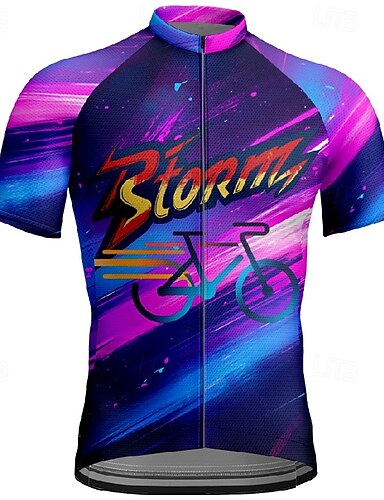 Муж. Велокофты Графика Градиент С короткими рукавами Велоспорт Футболка Футболка Верхняя часть с 3 задними карманами Быстровысыхающий Передняя молния Фитиль Виды спорта Синий Одежда
