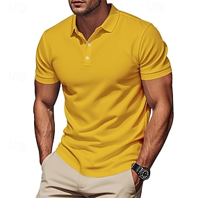 Муж. Рубашки-поло из вафельной ткани Рубашка для гольфа Повседневные Праздники Лацкан Ребристый воротник-поло С короткими рукавами Мода Классический Полотняное плетение Пуговицы Мягкий Лето Весна