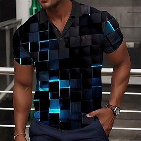 Муж. Геометрический принт Рубашка для гольфа С короткими рукавами Футболки поло Рубашки с воротником Деловая одежда Одежда для отпуска Официальная одежда Праздничная одежда Пуговицы 3D печать