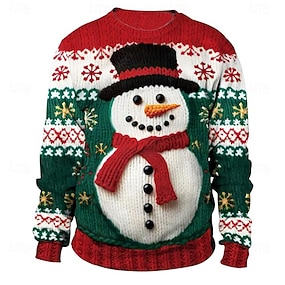 Уродливый рождественский свитер Муж. Снеговик В снежинку Пуловер Свитер Вязаная одежда "Круглый вырез ""под горло""" На каждый день Отпуск Повседневные фестиваль 3D печать Сохраняет тепло