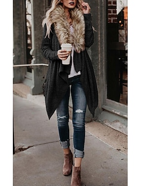 Жен. Пальто Тренч Для улицы На каждый день Отпуск Осень Зима Длинная Пальто Свободное облегание Сохраняет тепло Дышащий Стиль На каждый день Уличный стиль Жакеты Длинный рукав Сплошной цвет