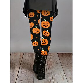 Жен. Леггинсы Отпуск Винтаж Мода Полная длина ЗавышеннаяPantsHalloween Графика Тыква Хэллоуин Рисунок Мягкий Дышащий Эластичность Для улицы Повседневные Праздники Черный Белый Оранжевый